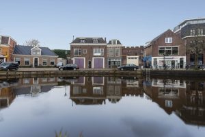 Dit herenhuis is gelegen aan de stadgracht van Sneek, dit openvaarwater sluit aan op de Houkesloot richting het Sneekermeer.