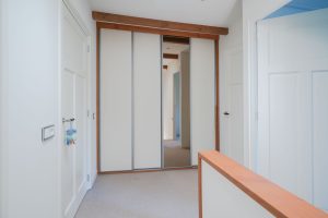 Vaste trapopgang naar 1e verdieping met overloop en kastruimte, 4 slaapkamers, badkamer.