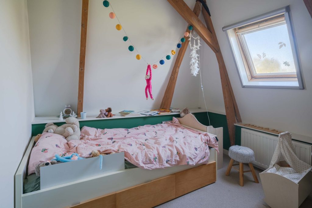 Via een eigen trap uit de opslag is een opbergkamer te bereiken.