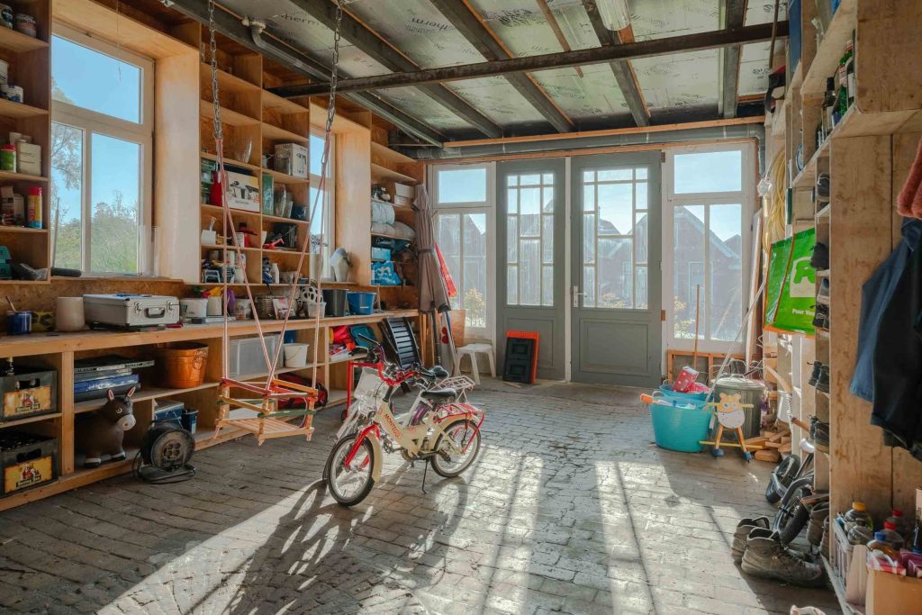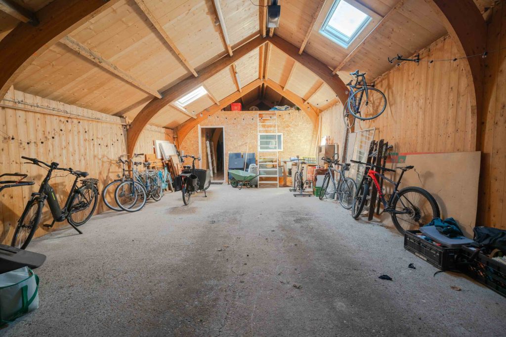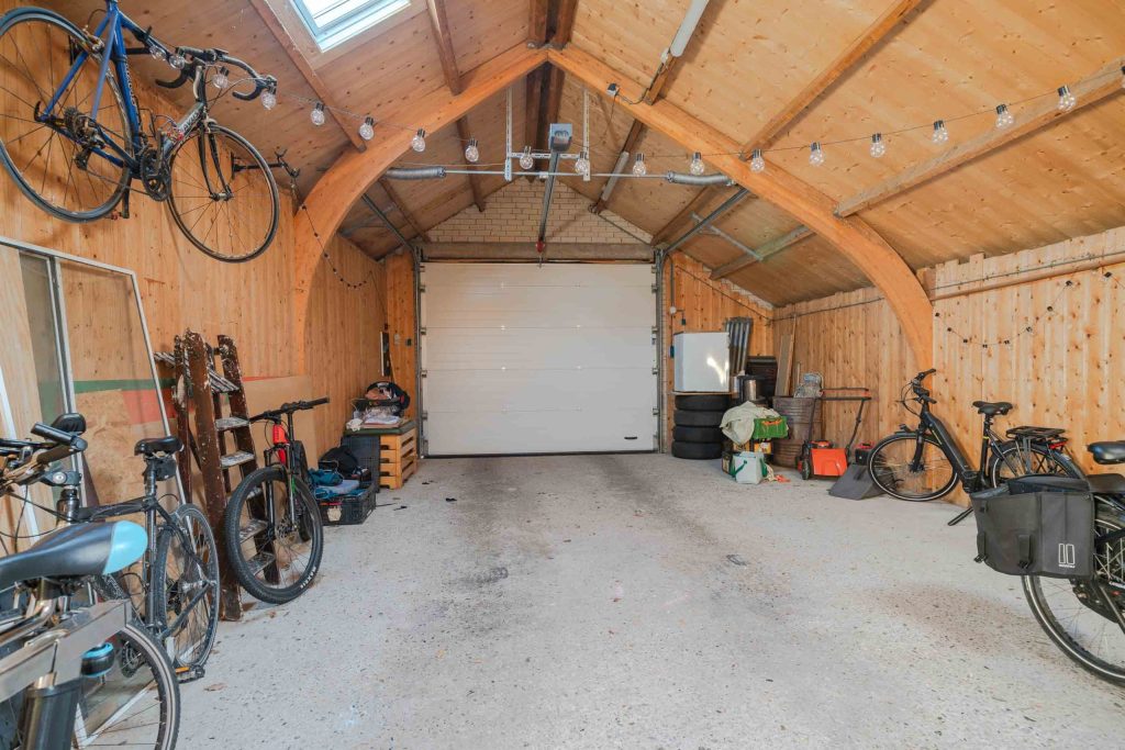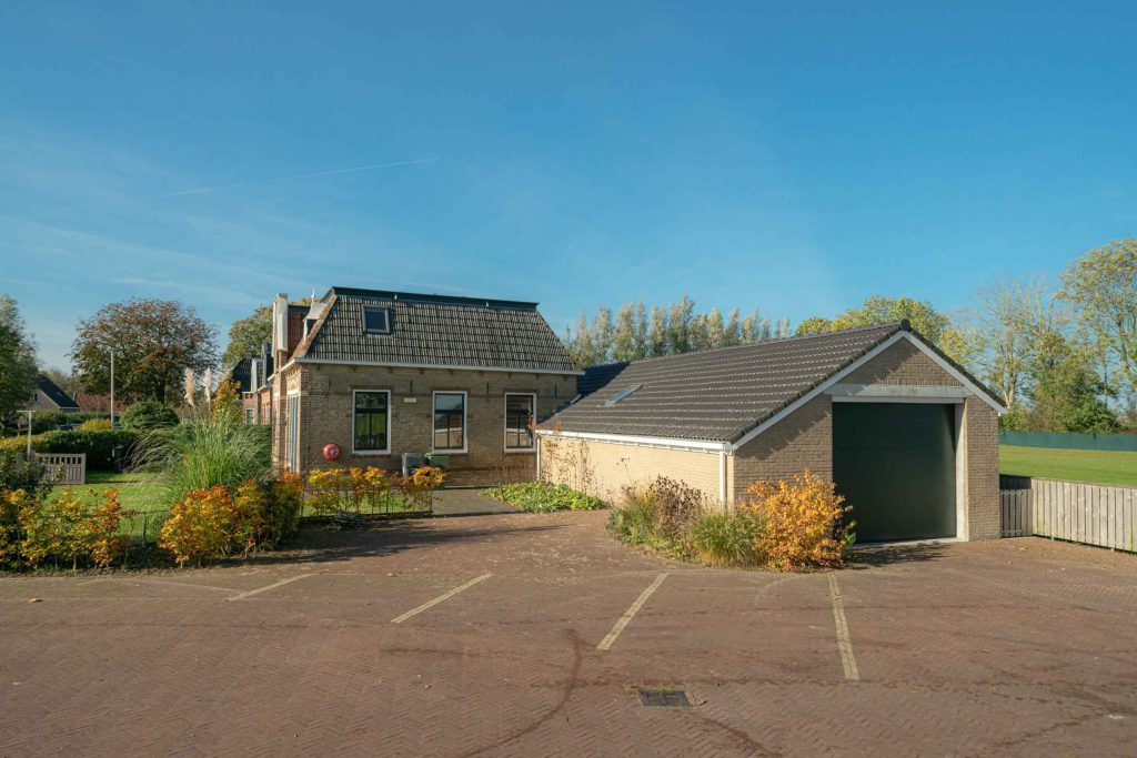 De woning beschikt over een eigen parkeergelegenheid voor circa twee auto’s. In de aangrenzende loods is een garage gerealiseerd met elektrische garagedeur en een betonnen vloer.