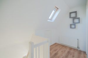 Verdieping: Via de vaste trap is de verdieping te bereiken. Overloop, 3 slaapkamers, badkamer.
