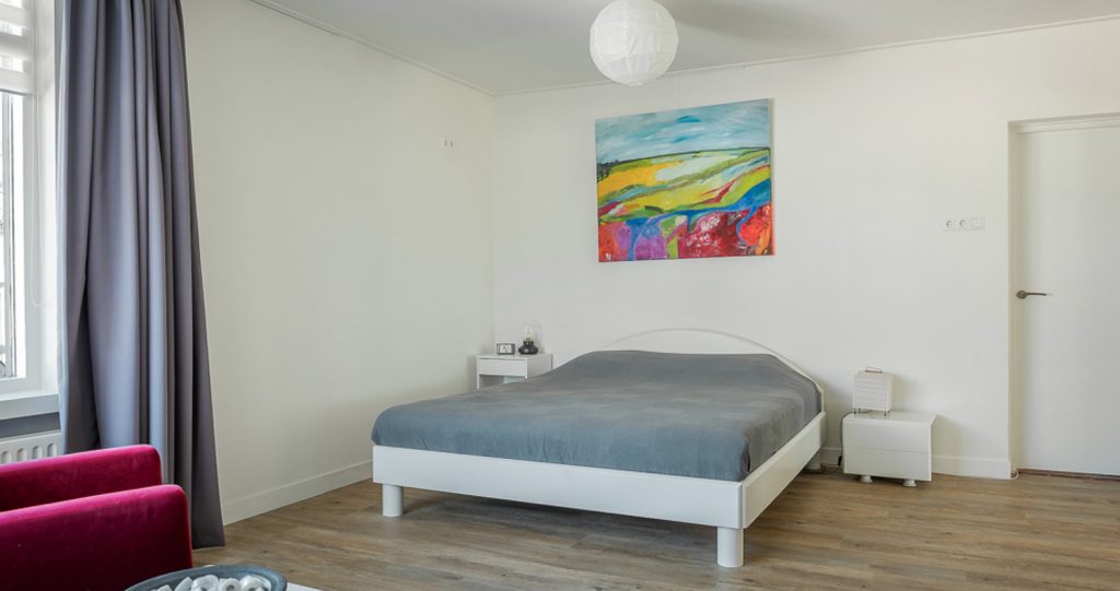 Slaapkamer: Vanuit de woonkamer is een slaapkamer gerealiseerd. Deze slaapkamer van circa 22m2 biedt voldoende ruimte voor een groot bed en kastruimte.