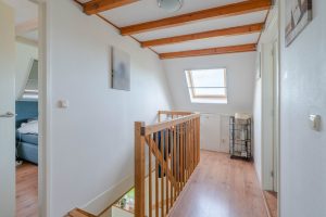 De woning heeft op de eerste verdieping een overloop en 3 slaapkamers van circa 14,2m², 12,1m² en 11,5m². Allen hebben kantelramen. De gehele woning is voorzien van houten kozijnen met dubbelglas. De woning heeft energielabel C.