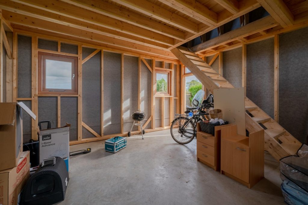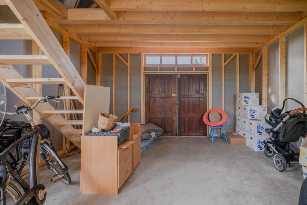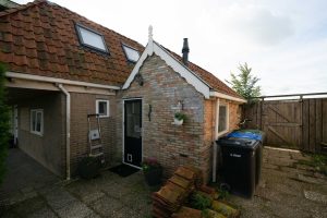 De woning heeft een achtertuin op het noordoosten en kijkt uit over de landerijen. De tuin grenst aan een sloot welke is verbonden aan vaarwater (Franekervaart). Aan de tuin gelegen bevindt zich een houten schuur welke recent opnieuw is opgebouwd. De schuur is voorzien van een betonnen vloer en geeft tevens ruimte voor het parkeren van één auto, er is elektra aanwezig. Ook bevindt zich een verdieping in de schuur.