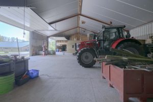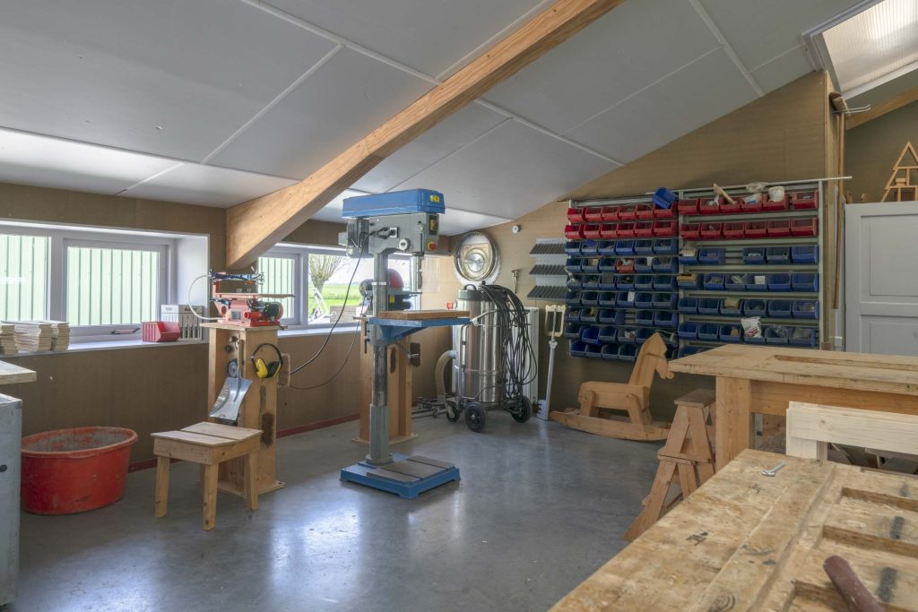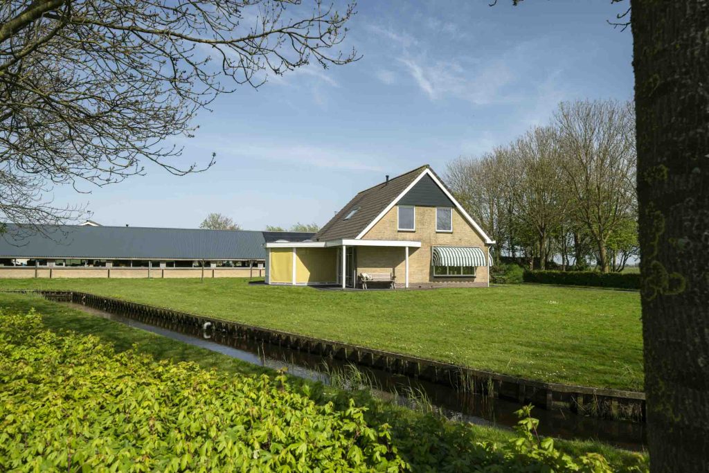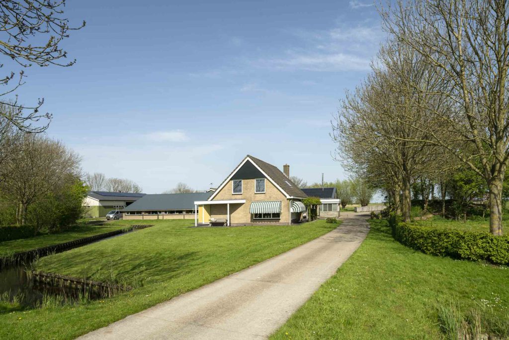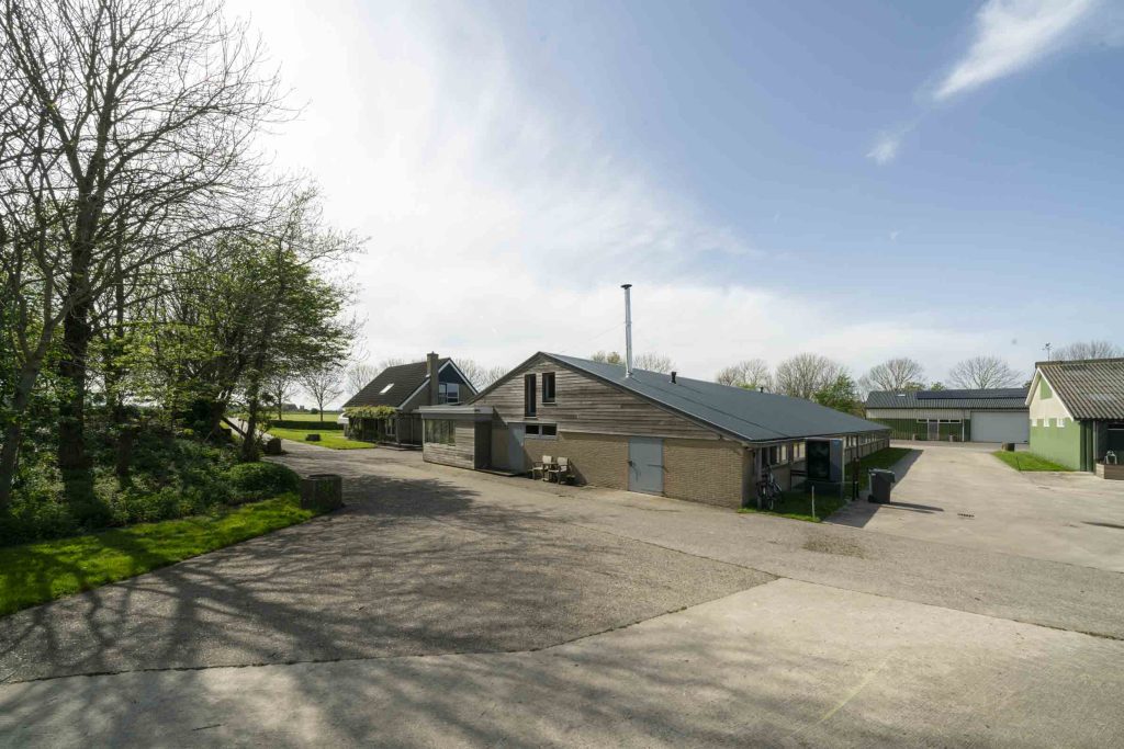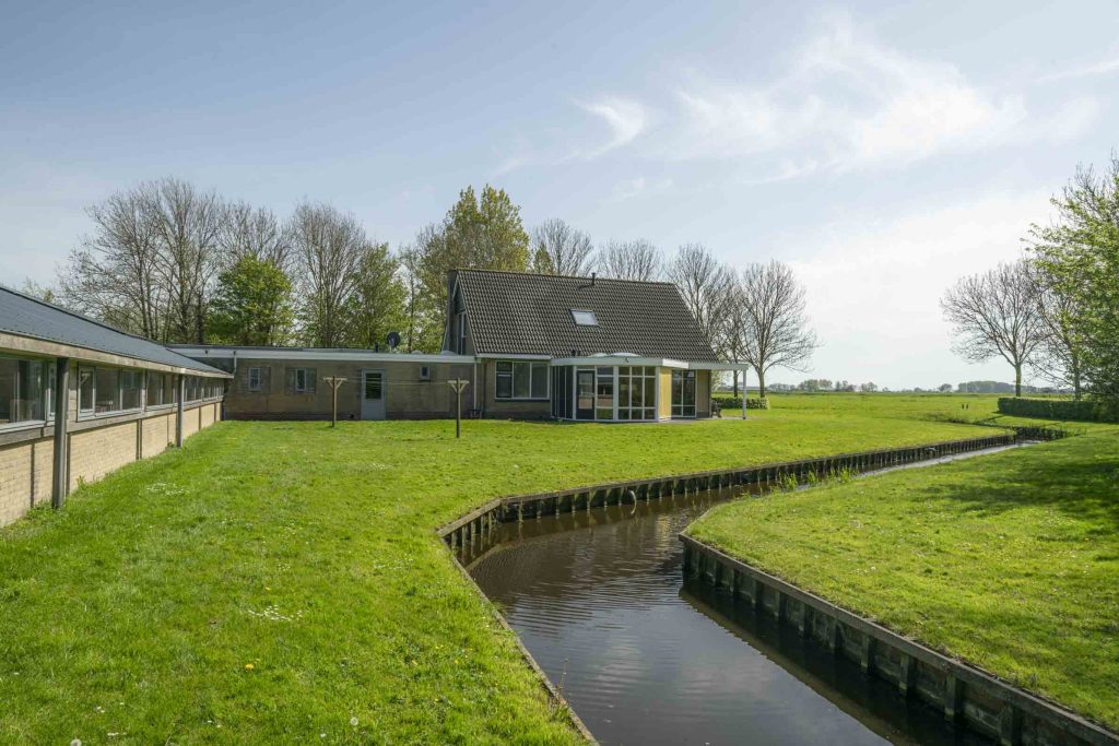 Tussen de weilanden bereikbaar over een uitstekend onderhouden pad ligt deze boerderij bestaande uit een woning, een ligboxstal verbouwd tot zorginstelling, een jongveestal, werkplaats en een schapenstal. Momenteel biedt de zorginstelling dagbesteding aan circa 15 jongeren.