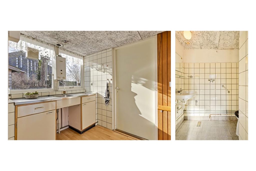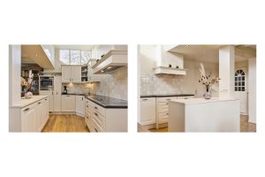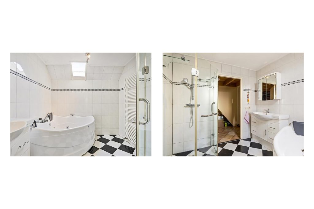Aansluitend aan de woonkamer bevindt zich de bijkeuken, die tevens toegang biedt tot de badkamer. Deze is compleet uitgerust met een bubbelbad, douchecabine, wastafel en vloerverwarming voor extra comfort. Vanuit de bijkeuken is er ook een doorgang naar de aangrenzende traditionele schuur.