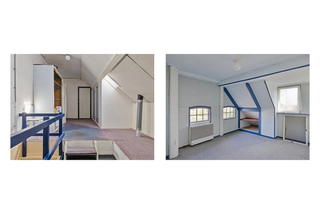 Vanaf de overloop is er bovendien toegang tot de hooizolder in de aangrenzende schuur – een indrukwekkende ruimte met veel potentie, bijvoorbeeld als opslag of uitbreiding van het woongedeelte.