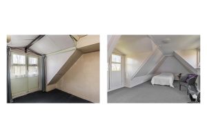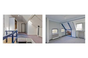Een gedeelte van de voormalige tweede woning is in originele staat behouden. Dit deel heeft een eigen toegangsdeur, een kleine keukenopstelling, een toilet en een zit-/werkkamer. Dankzij deze opzet is dit deel uitermate geschikt voor gebruik als praktijkruimte, gastverblijf of kantoor aan huis. In dit gedeelte bevindt zich ook een gerenoveerde slaapkamer, die bereikbaar is via een eigen trapopgang vanuit de woonkamer.