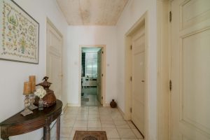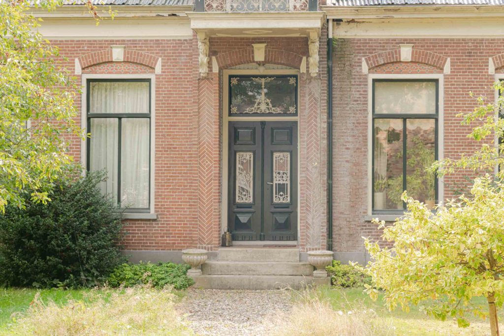 Gang: De sierlijke entree geeft toegang tot het voorhuis van de boerderij. In de hal zijn tal van historische kenmerken te vinden als dubbel openslaande deuren met sierlijk gietijzer elementen, trekbel, marmeren vloer en een plafond met sierlijsten en een rozet met kroonluchter.