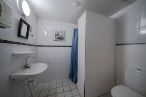 Er zijn 2 gezamenlijke badkamers ingericht. Elk met een douchcabine, wc en wastafel.