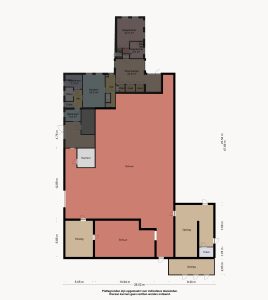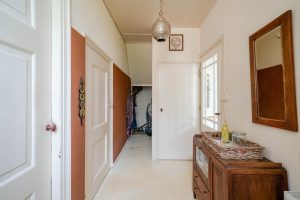 Naast de keuken is nog een hal. Hieraan zijn onder andere de toilet, badkamer en schuurruimte verbonden.