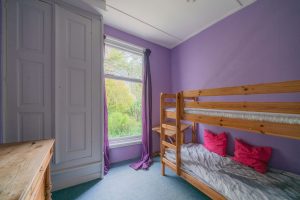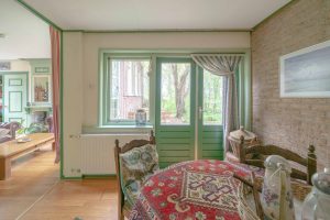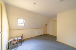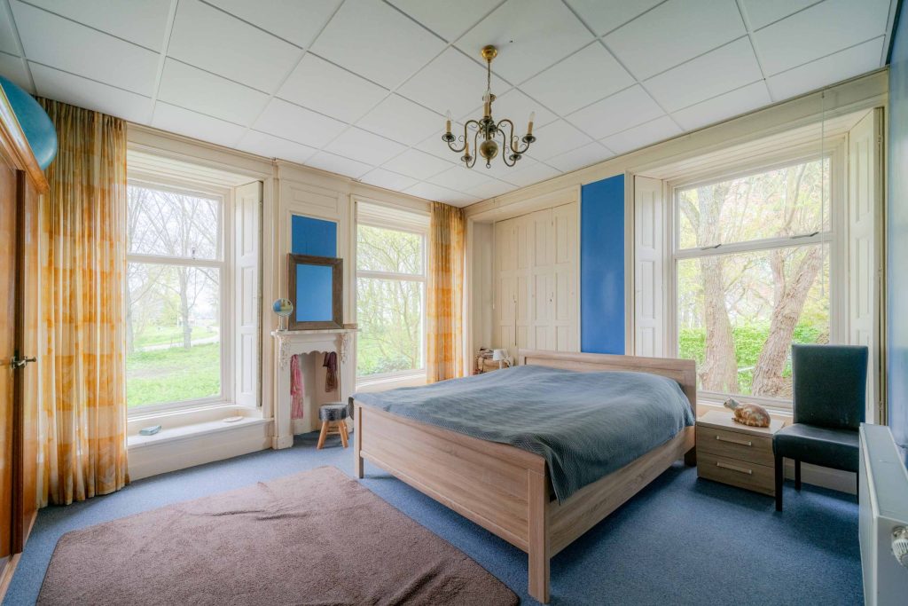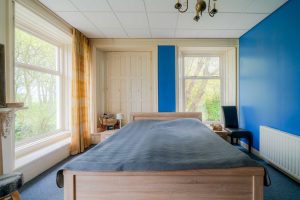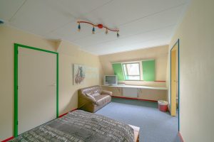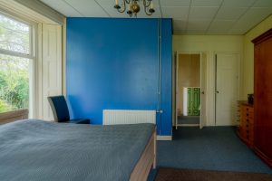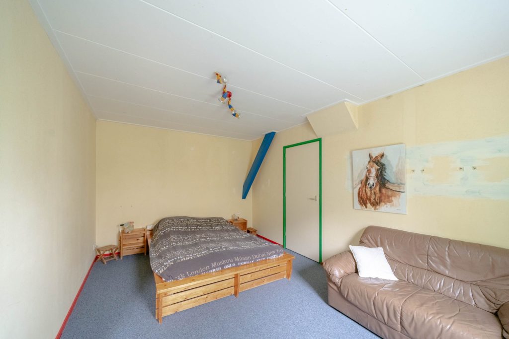 Vanuit de woonkamer is de kop van de boerderij te bereiken waar zich 2 slaapkamers bevinden. Deze zijn circa 22m2 en 7m2 groot en beschikken elk over hoge ramen, een eigen inbouwkast en vloerbedekking. De hoge ramen in de grootste slaapkamer beschikken over ingebouwde luiken aan de binnenkant voor de verduistering van de kamer.