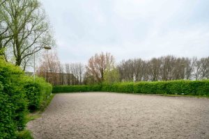 Tussen de schuur van de boerderij en de binnenbak is een tussenruimte met een tweetal paardenboxen en opbergruimte voor zadel, kleden en toebehoren. Verderop is nog een ruime wc gerealiseerd voor bezoekers van de manege.