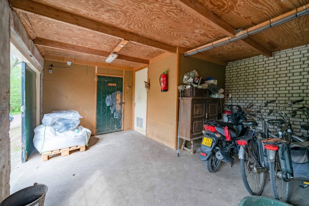 Tussen het woon- en schuurgedeelte zit een bijkeuken van circa 6m2. Deze wordt voornamelijk gebruikt als opslag.