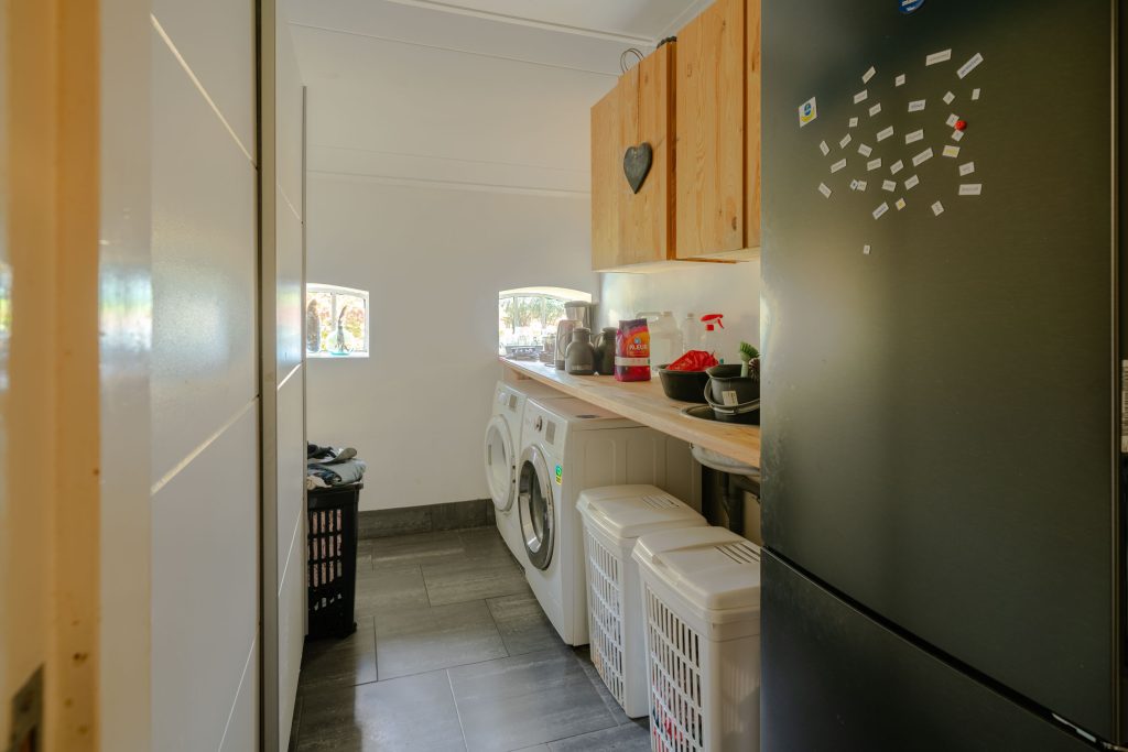 In de bijkeuken zijn witgoedaansluitingen aanwezig. Aangrenzend is een technische ruimte waar de Cv-ketel is geplaatst en de vloerverwarming verdeler.