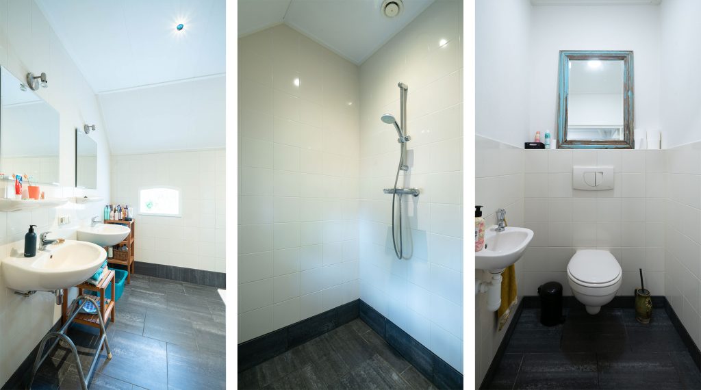 Er is een ruime toiletruimte met wasbak aanwezig vanuit de hal.