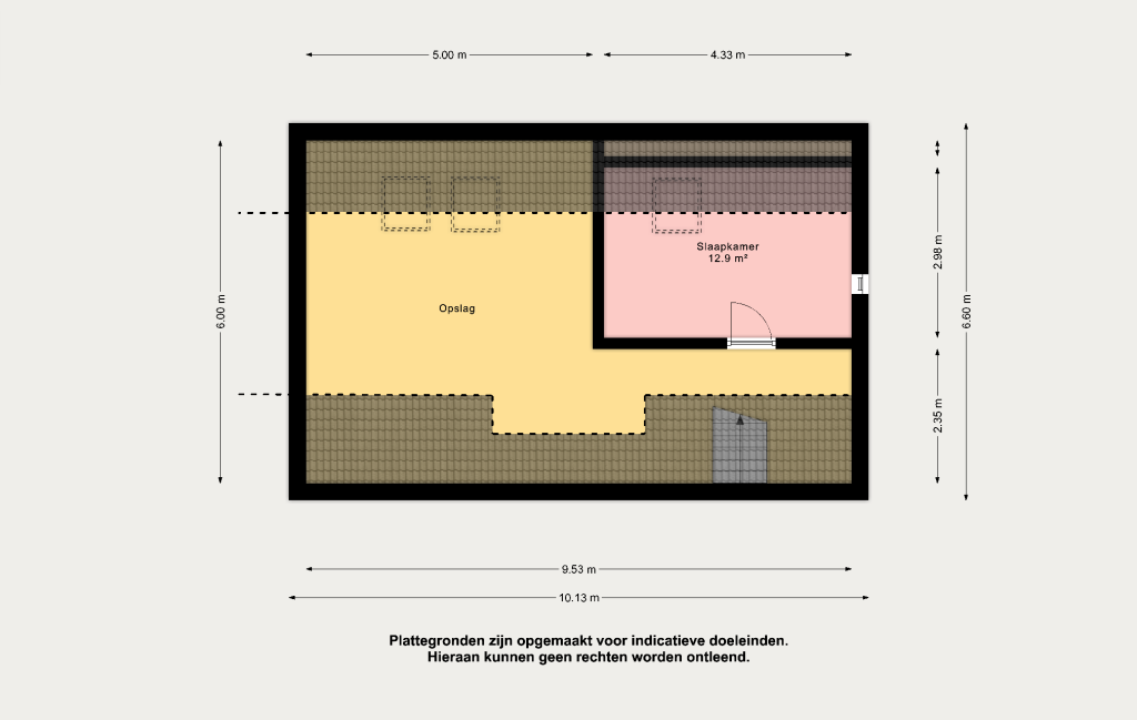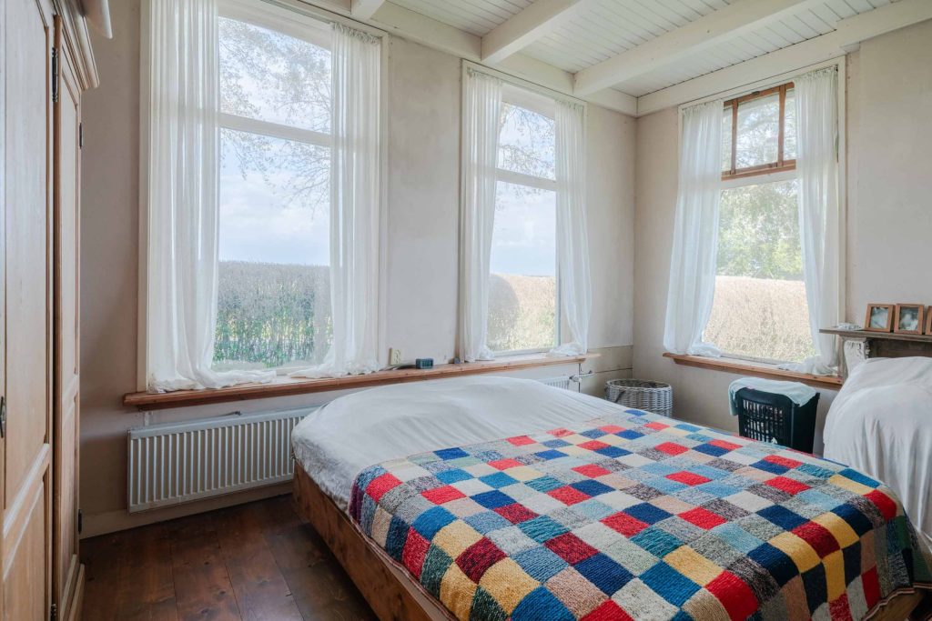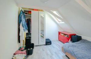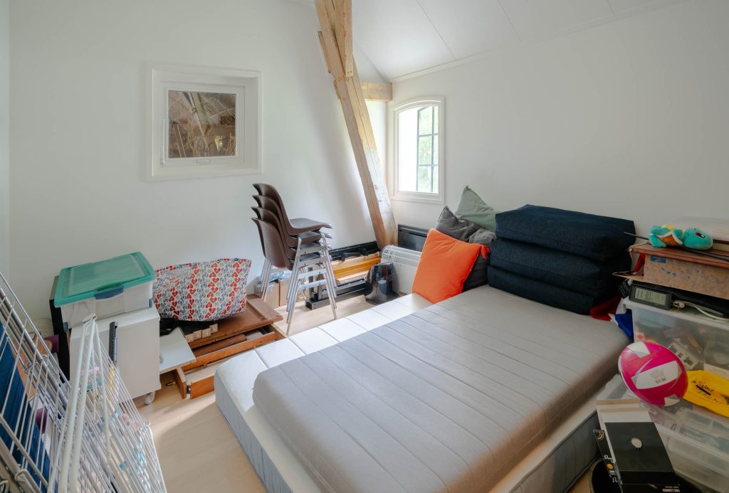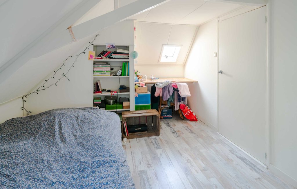 De slaapkamer op de verdieping heeft een oppervlakte van circa 13m². De slaapkamer beschikt over een kantelraam en worden verwarmd met radiatoren.