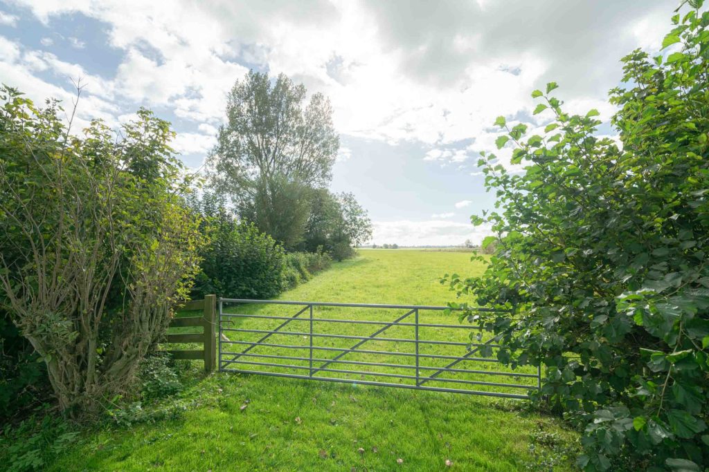 De boerderij staat op een perceel van circa 10.210m2 groot. Door de ligging van de boerderij blijft er veel bruikbare grond over. Het perceel is grotendeels omringt door een sloot en anderzijds door een hekwerk. Een eigen oprit geeft toegang tot het erf. De erfverharding is van grind, op het erf is tal van parkeergelegenheid. Het stuk grasland naast de boerderij heeft een eigen entree vanaf de weg en is afgesloten door een hekwerk.