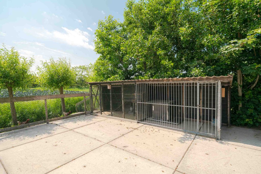 De ruimte en de loods bieden mogelijkheden om bijvoorbeeld paarden of hobby’s op uw eigen perceel te houden. De erfverharding is grotendeels van klinkers, en achter op het terrein bij de stallen liggen betonplaten.